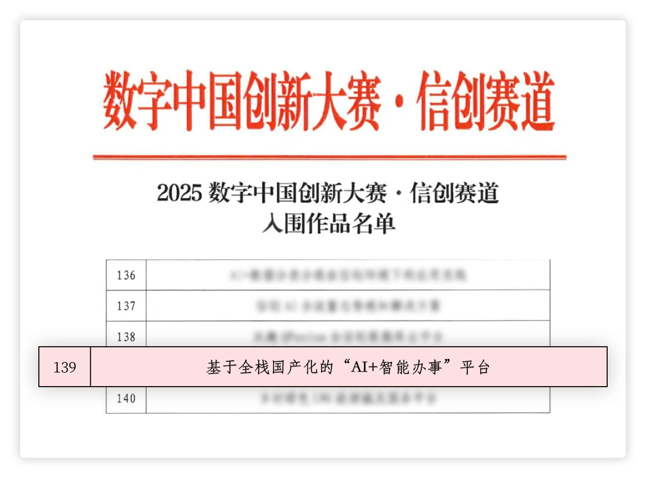 本周,由微宏科技和萧山区大数据管理服务中心联合申报的《基于全栈国产化的“AI+智能办事”平台》项目,在2025数字中国创新大赛·信创赛道华东赛区上千个项目的激烈角逐中脱颖而出,成功入围!
