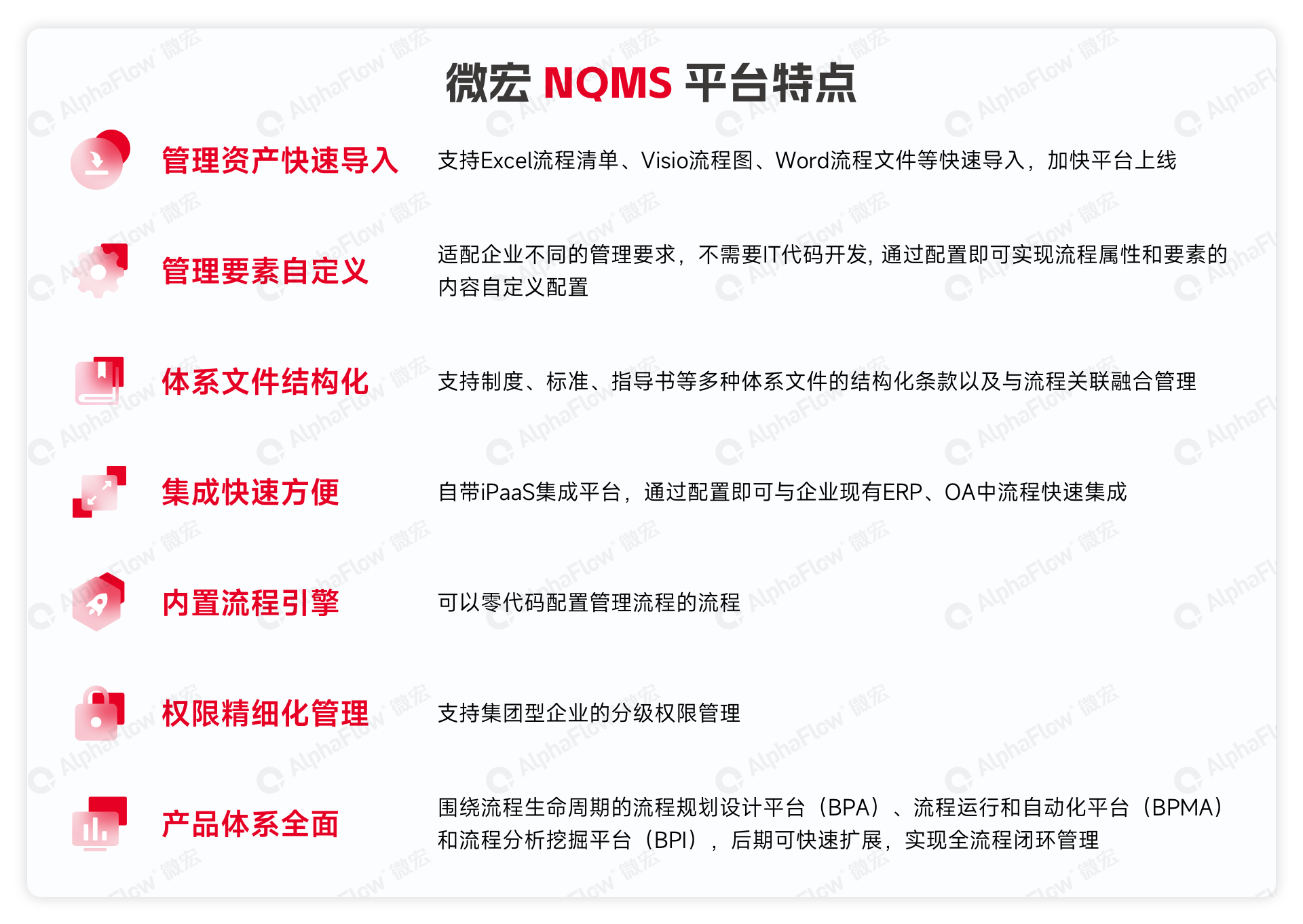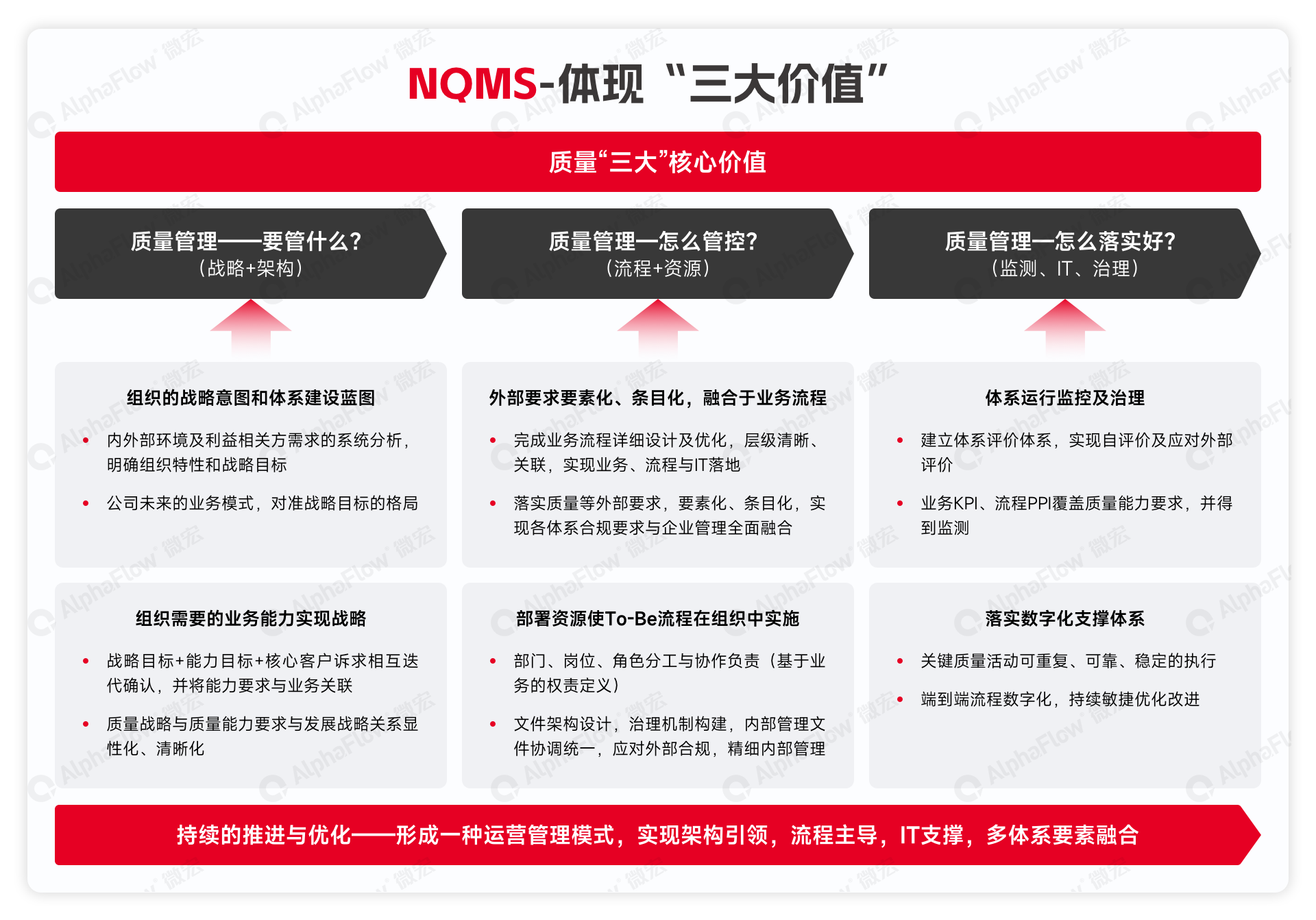 微宏NQMS应用平台以“管什么”“怎么管”“怎么落实”三个关键问题为导向构建价值体系: